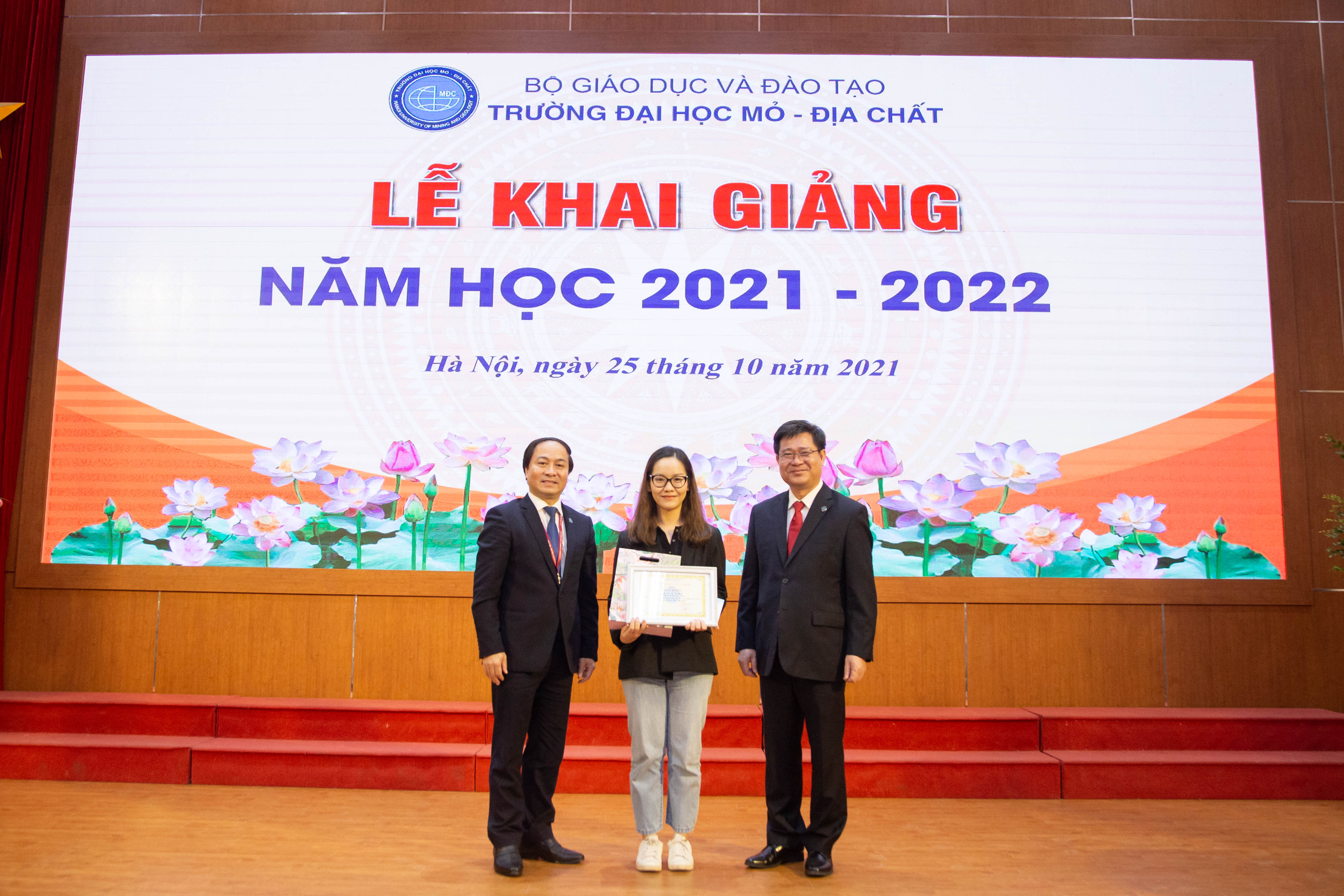 Trao khen thưởng cho sinh viên Lê Ái Minh - Khoa Trắc địa Bản đồ & QLĐĐ thủ khoa đầu vào K66